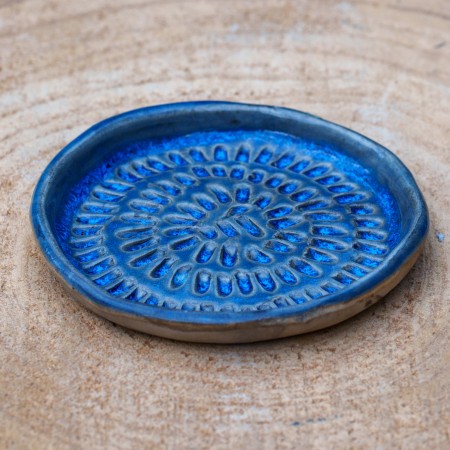 Coupelle en céramique bleue. Idéale pour déposer vos bijoux sur votre table de nuit ou au bord de l'évier.
