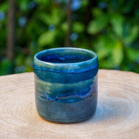 Pot en céramique blanc et vert d'eau Vous pourrez l'utiliser à table ou en déco et y déposer toutes sortes de petits objets.