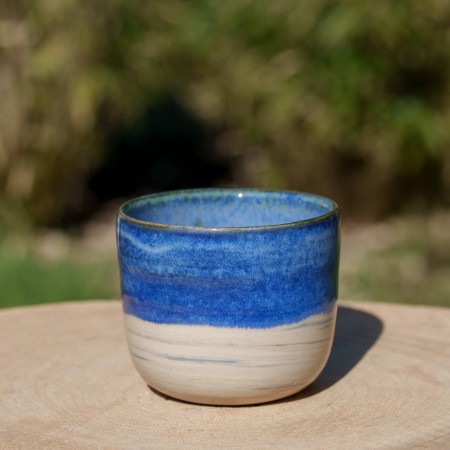 Pot en céramique blanc et bleu Vous pourrez l'utiliser à table ou en déco et y déposer toutes sortes de petits objets.
