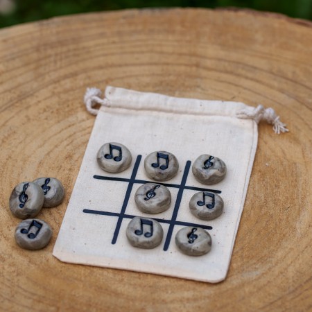 Une petite partie de Morpion ? Rien de plus facile avec ce jeu de morpion en céramique. Livré dans sa pochette en lin, on peut l'emporter partout avec nous ! Thème musique avec Clé de Sol et double croche, c'est l'idée cadeau parfaite pour tous les mélomanes !