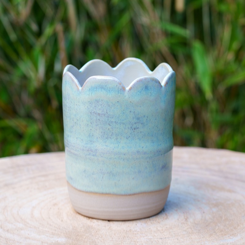 J'ai ensuite ajouté sa couleur bleu pastel avant de le cuire une seconde fois à très haute température (1260°C) pour obtenir une finition lisse et une étanchéité parfaite