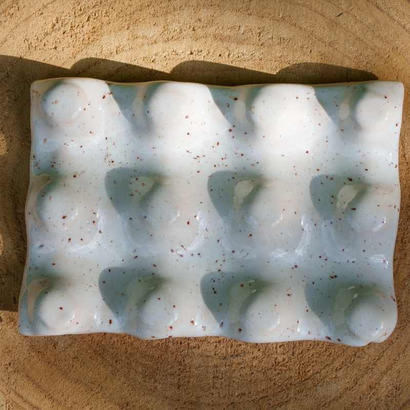 ☆ Fabriqué à la main dans mon atelier, ce plateau est réalisée en grès, il sera parfait pour ranger les oeufs dans votre cuisine