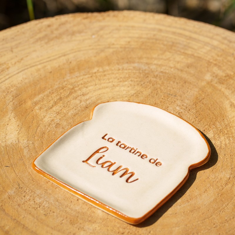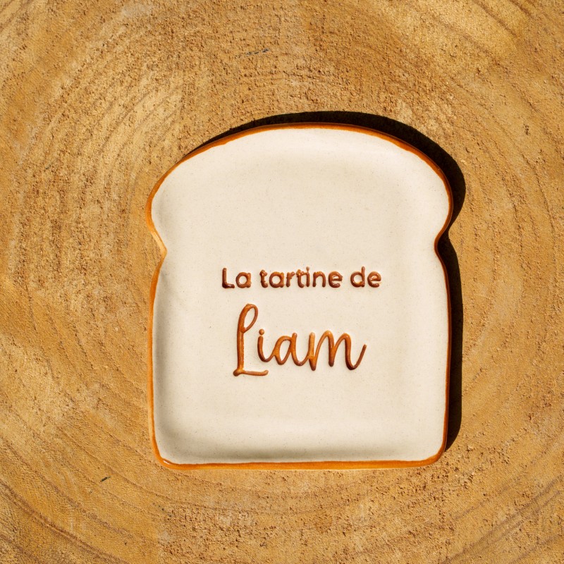 Le prénom sera précédé de la mention "La tartine de" ou "La tartine d'" selon le choix sélectionné dans le menu déroulant.