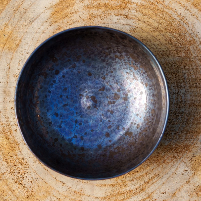 Bol vide-poche avec un émail satiné qui rappelle le bronze martelé.