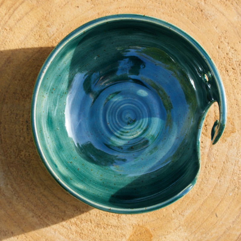 Émaillé d'un vert translucide, ce bol pour tricot sera votre nouvel allié pour vos prochains ouvrages.
