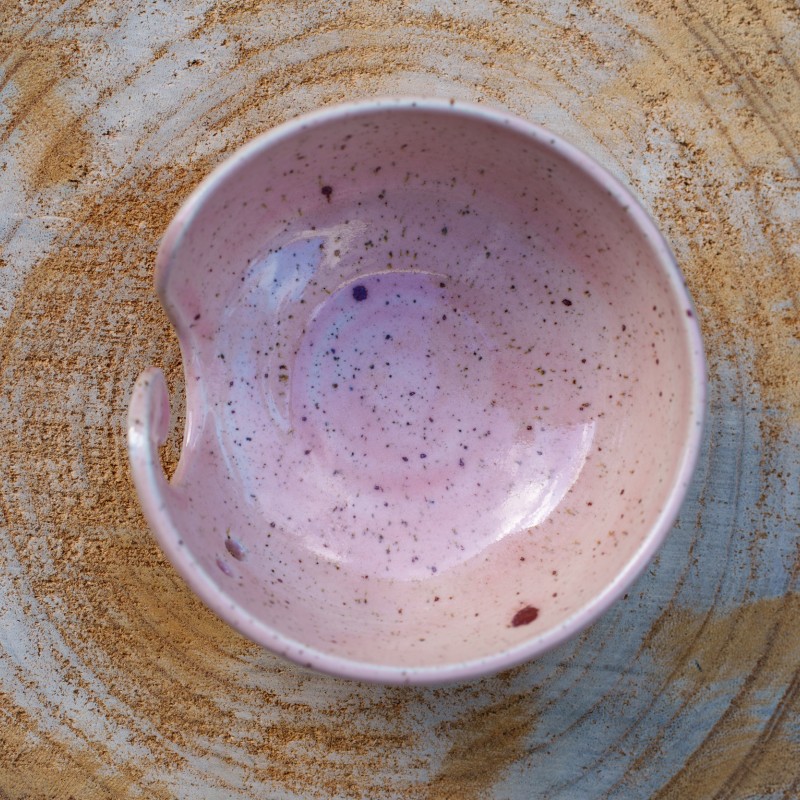 Émaillé d'un rose translucide, ce bol pour tricot sera votre nouvel allié pour vos prochains ouvrages.