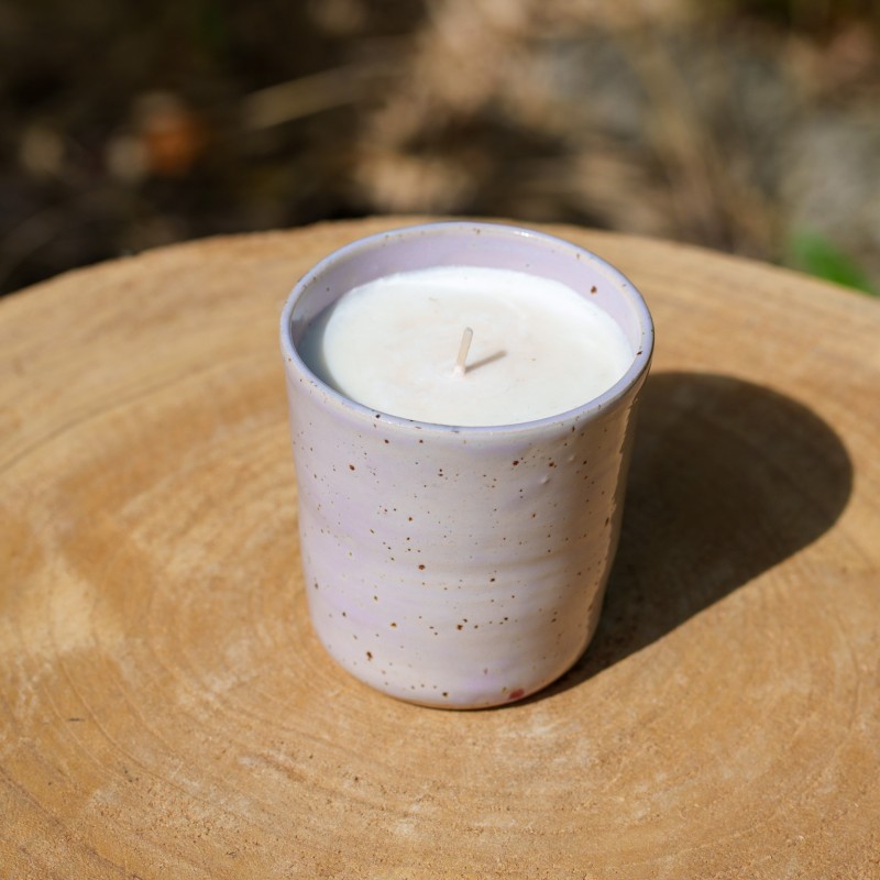 Une couleur violine toute douce et un parfum léger pour cette bougie artisanale.