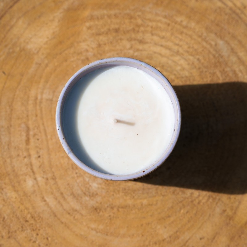 Réalisée dans mon atelier avec des matériaux rigoureusement sélectionnés (Parfum de Grasse, cire végétale, Grès de Puisaye), cette bougie offre 30 heures de combustion.