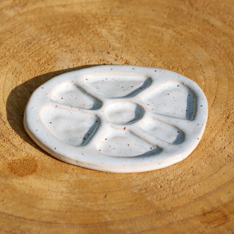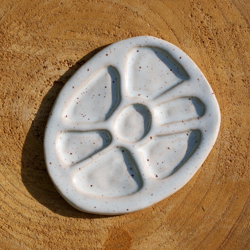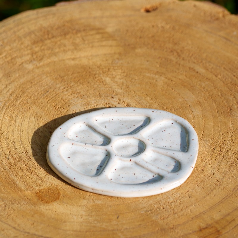 Cette petite palette de peinture est fabriquée à la main en utilisant la technique du modelage..