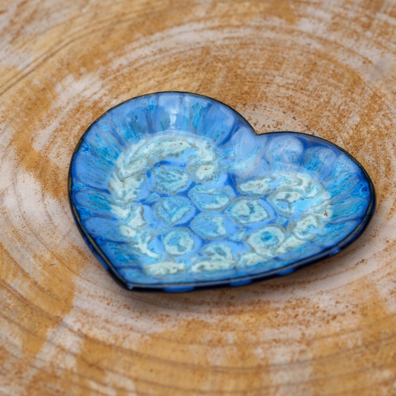 Coupelle en forme de coeur bleues avec motifs écailles de tortue