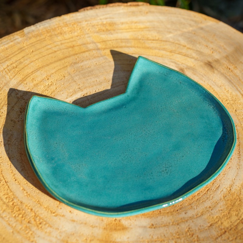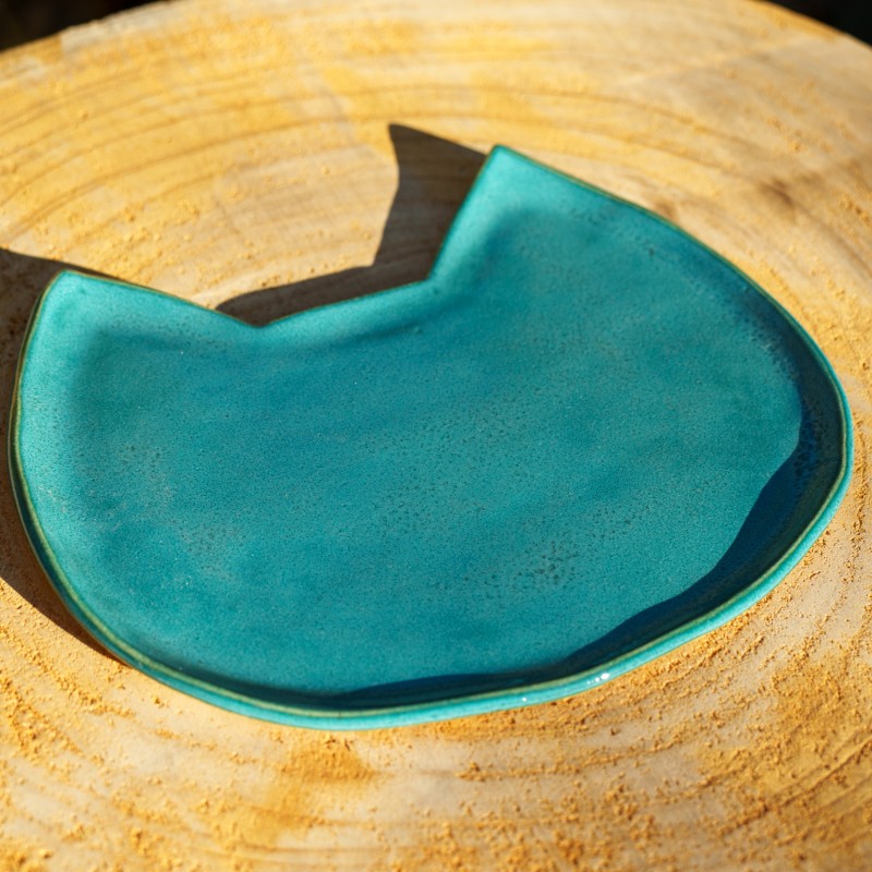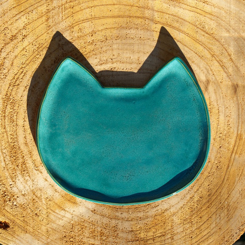 Coupelle bleu turquoise en forme de chat.