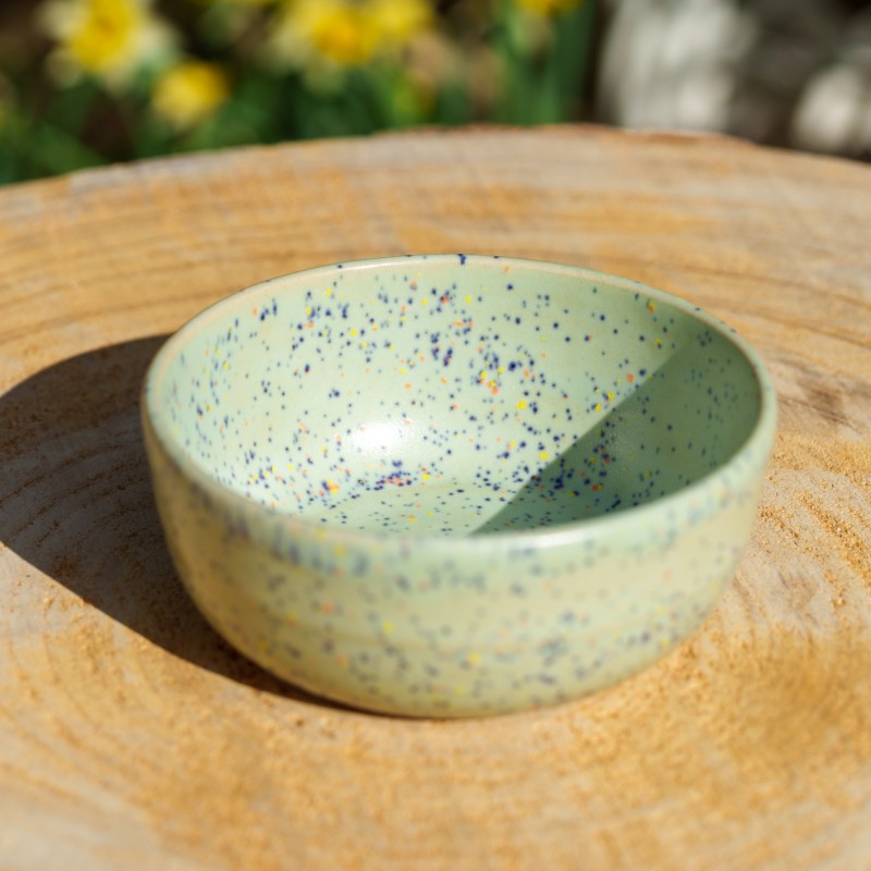 Cette petite coupelle est fabriquée à la main en utilisant la technique du tournage..