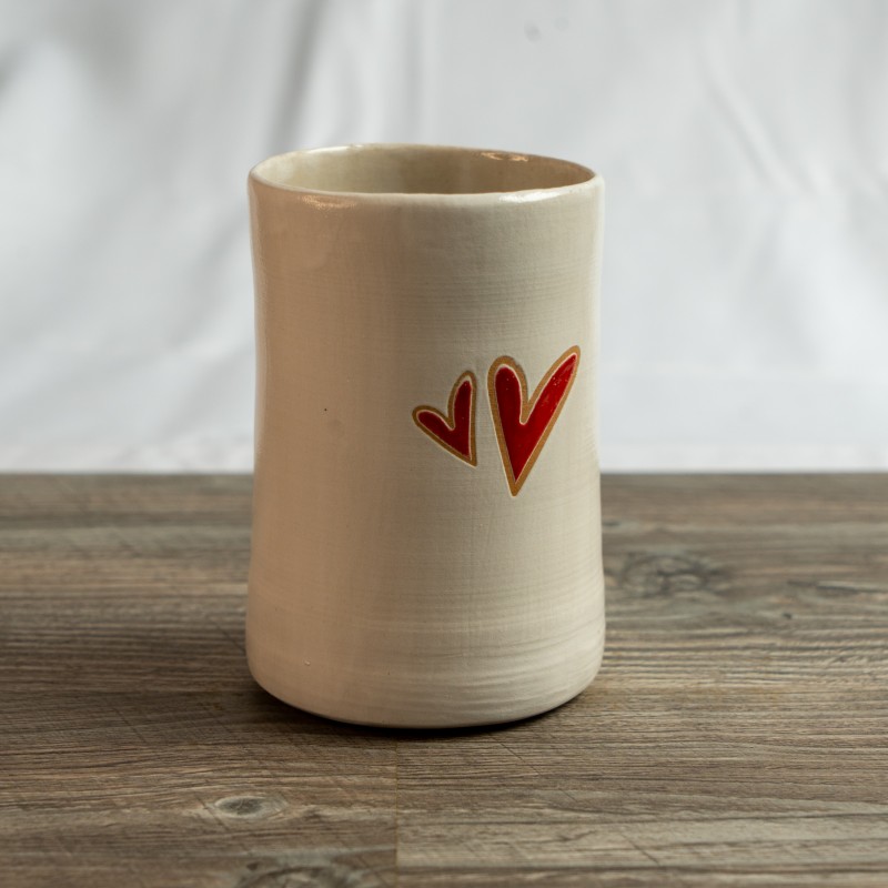 ☆ Grès blanc, émail blanc et coeurs rouges.