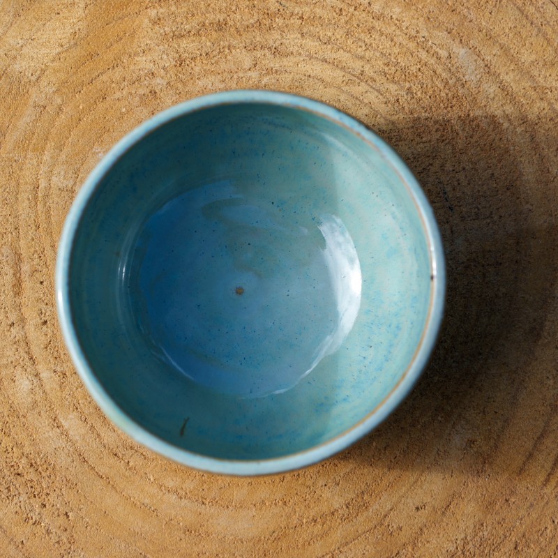 Pot avec un émail brillant bleu légèrement vert d'eau.