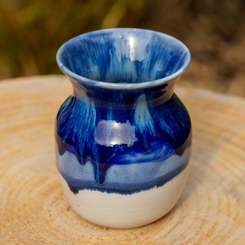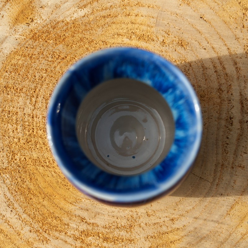 J'ai ensuite ajouté sa couleur bleu avec quelques effets pour lui apporte un peu de profondeur, avant de le cuire une seconde fois à très haute température (1260°C) pour obtenir une finition lisse et une étanchéité parfaite.