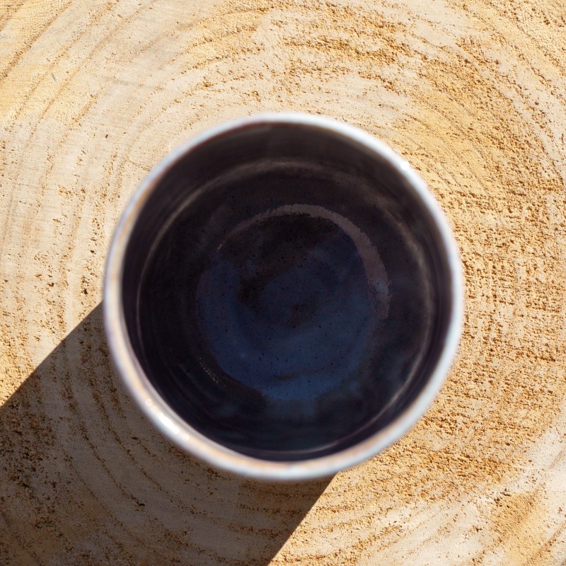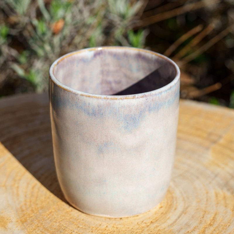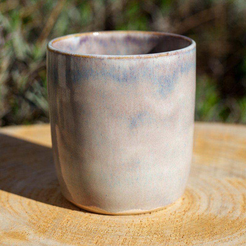 Pot droit avec un émail brillant bleu ciel aux reflets violets